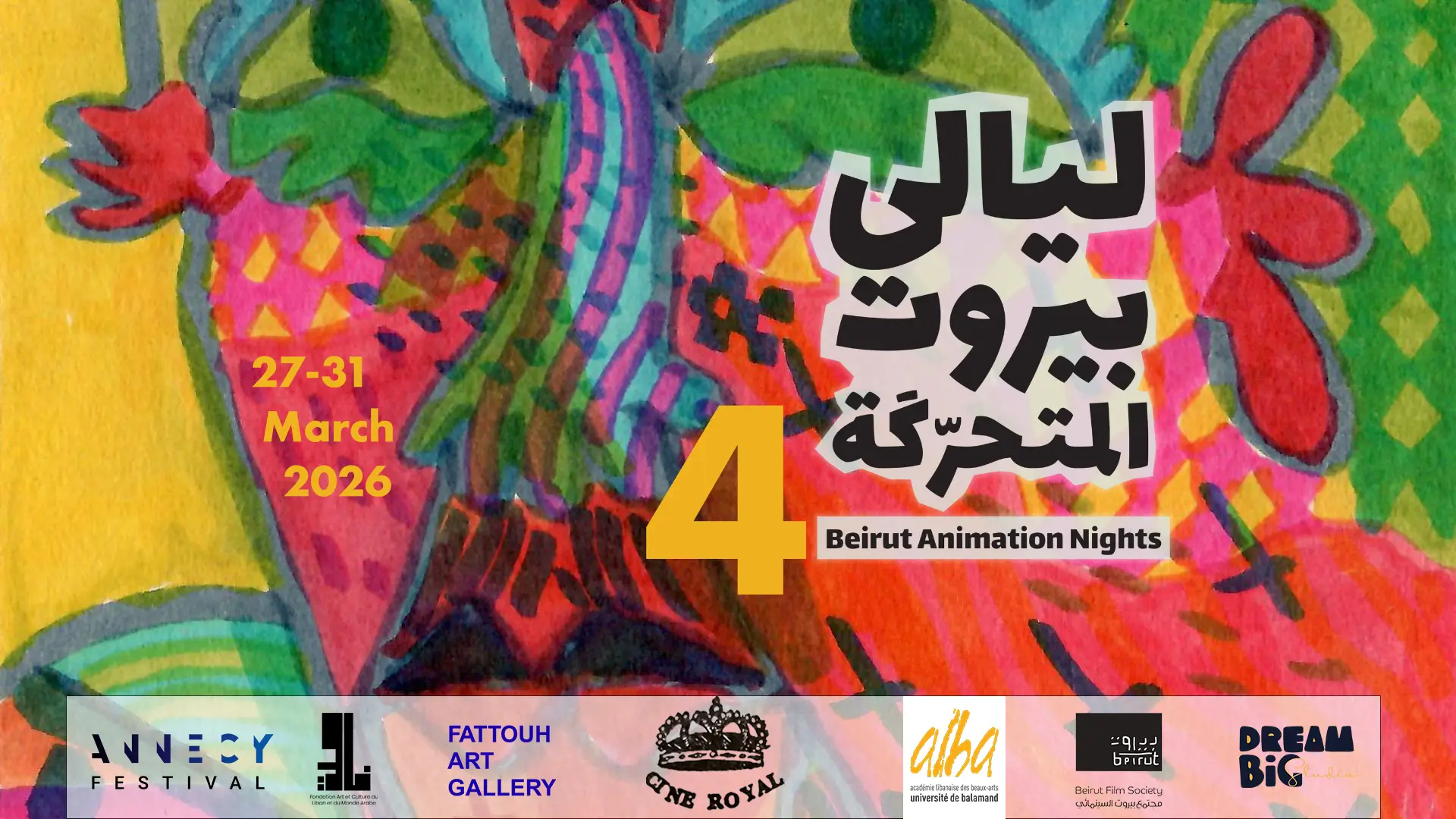Beirut Animation Nights is organized in partnership with Académie Libanaise des Beaux Arts and Beirut Film Society, and builds a network of partnerships and collaborations with sisters festivals and film associations in Lebanon and the entire world.